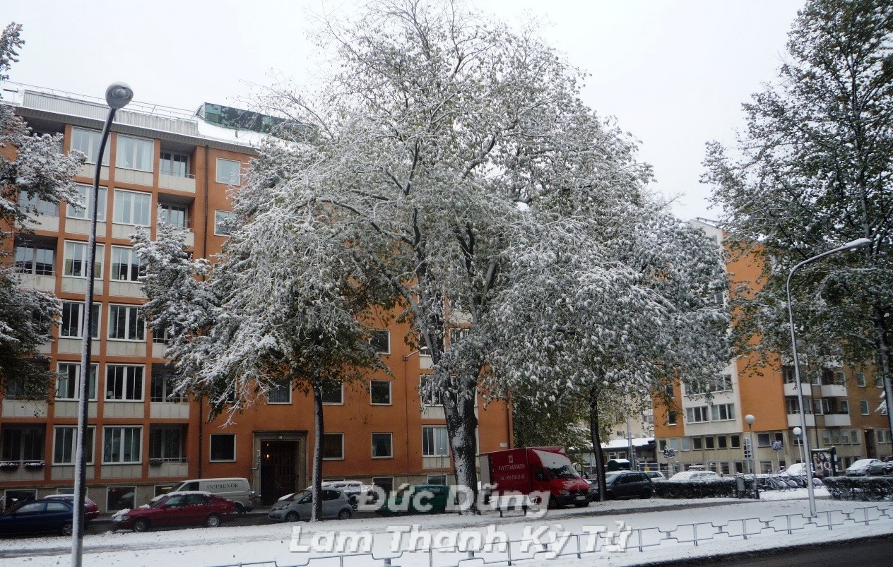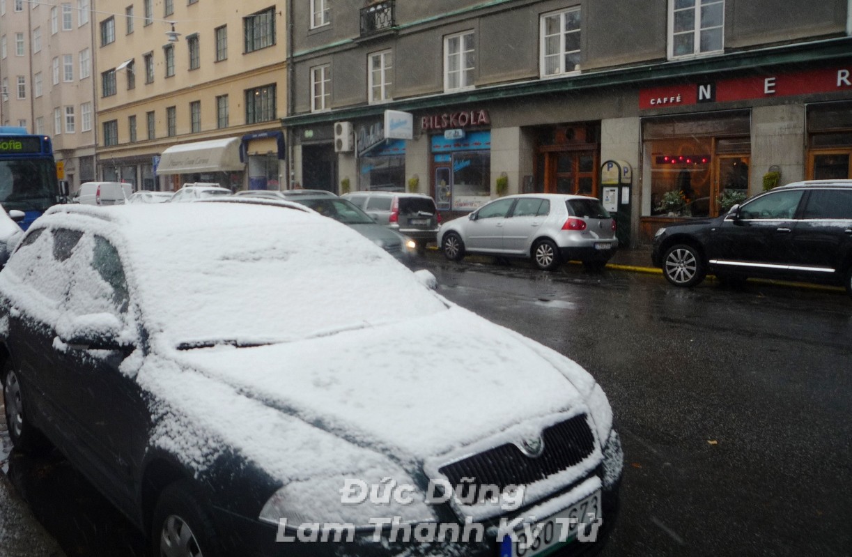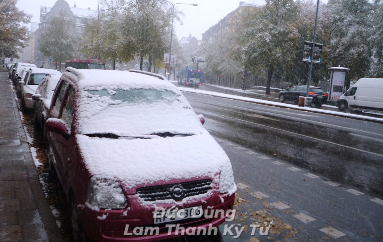 Sau đây là một số hình ảnh Đức Dũng đã ghi lại được ở thành phố Stockholm trong ngày tuyết rơi đầu mùa.